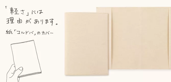 此揉紙書套使用的材質為『コルドバ』(Cordoba),材質獨特仿皮革質感,並具耐水性,